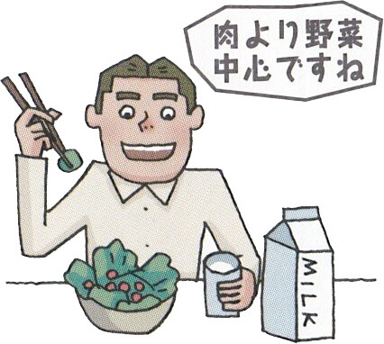 ③アルカリ性食品を積極的にとろう。野菜、海藻、牛乳などの野菜中心の食生活に。